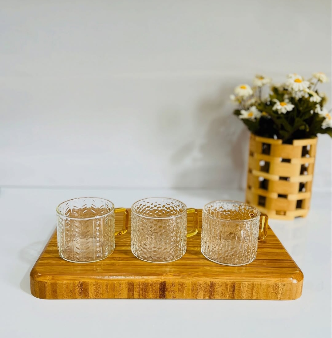 • توضیحات: از جنس پیرکس شفاف بدنه با طرح برجسته دونه انار ،گندم، یخی در مدل خمره‌ای دسته طلایی مناسب برای سرو انواع نوشیدنی گرم و سرد دارای جعبه بسته بندی تکی تعداد 6 عددی وارداتی