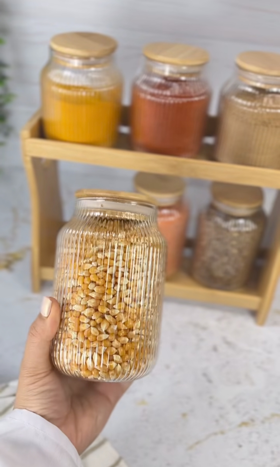 • توضیحات: جا ادویه دو طبقه همراه 6 عدد بانکه برای ادویه،قند،چای،حبوبات،نبات و غیره استفاده کنید جنس استند چوب بامبو جنس بانکه پیرکس شیار دار درب بامبو ارتفاع استند 33×۱۲ارتفاع۲۴ ابعاد بانکه کوچک۱۰×۹ ابعاد بانکه بزرگ ۱۴×۹ ابعاد بانکه ها متغیریه هست