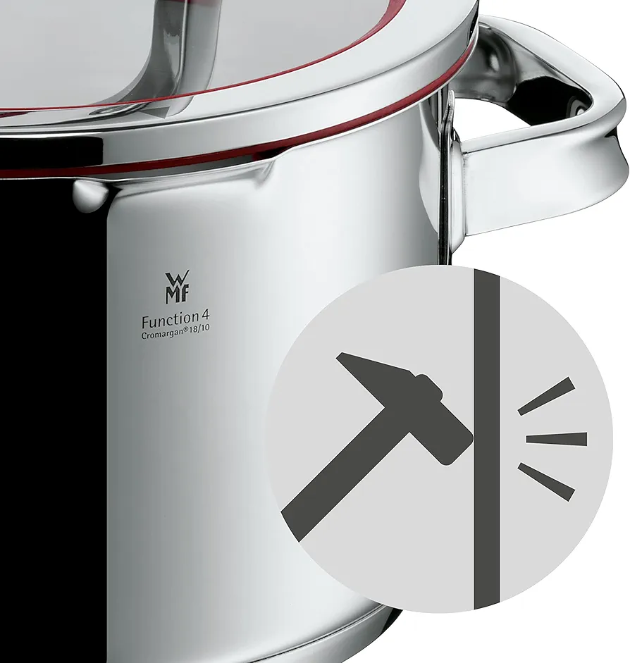 قابلمه های WMF Fanction4 دارای دسته های توخالی هستند که انتقال حرارت را از قابلمه به دسته کاهش می دهند