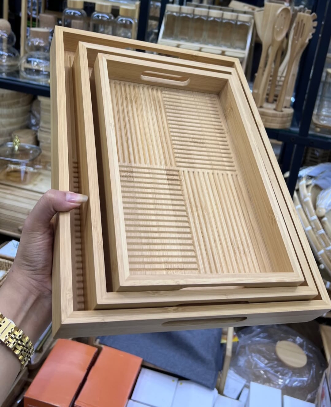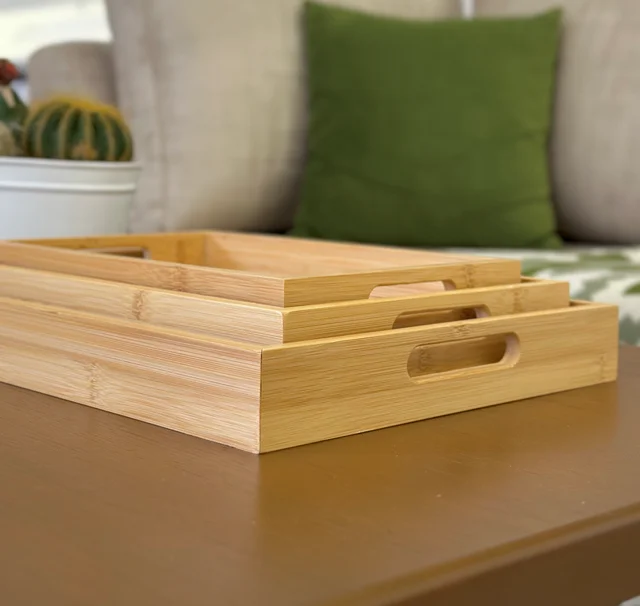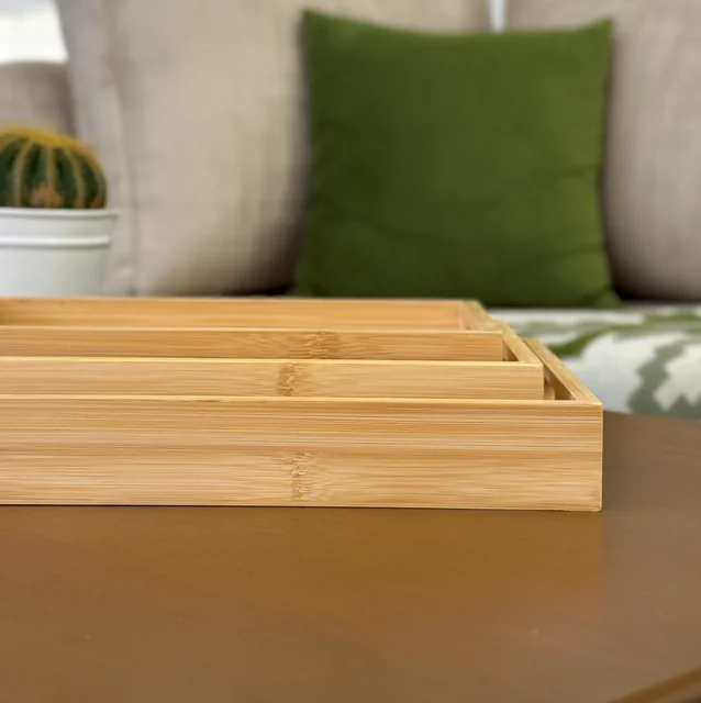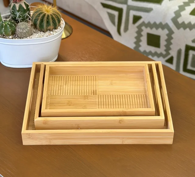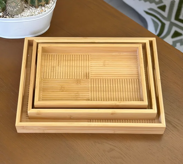ست سینی بامبو مستطیل خط دار 3 سایز از چوب طبیعی بامبو، مقاوم، زیبا و دوستدار محیط زیست ساخته شده
