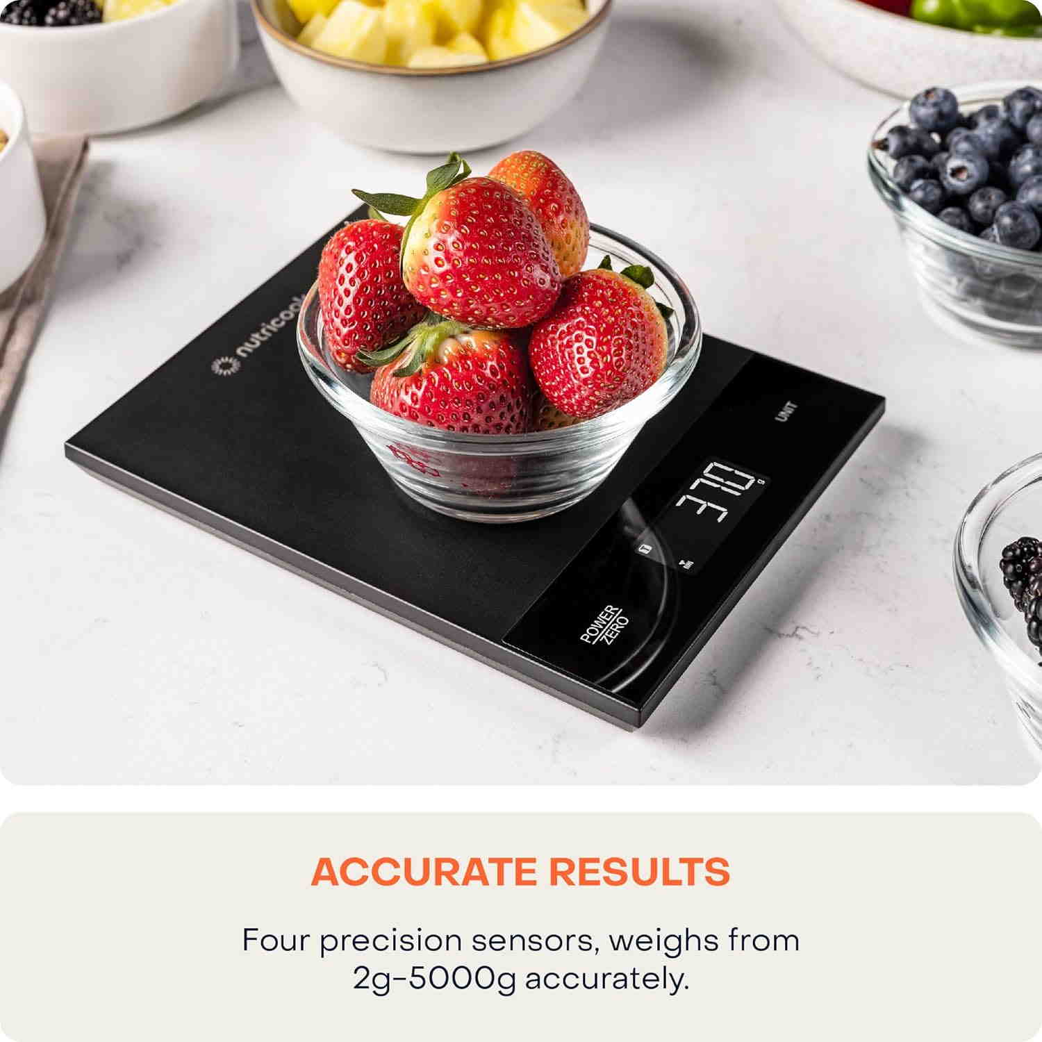 دارای 4 حالت اندازه گیری مانند گرم، میلی لیتر، پوند و اونس، اونس مایع
