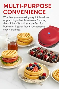 ✔️طراحی جمع و جور و کم جا - این دستگاه وافل ساز کوچک به راحتی روی پیشخوان شما جا میشود و به راحتی در آشپزخانههای کوچک، خوابگاهها یا خانههای کوچک قابل نگهداری است.