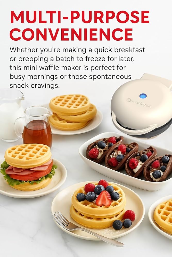 ◀️با دستگاه وافلساز کوچک Nutricook، در عرض چند دقیقه وافلهای طلایی و خوشمزه درست کنید. طراحی جمع و جور آن کاملاً با هر آشپزخانهای سازگار است، در حالی که قدرت ۴۲۰ وات با گرمایش سریع، هر بار نتایج سریع و پفکی را تضمین میکند. صفحات با روکش سرامیکی نچسب، بدون مواد مضر و بدون PTFE، PFOA یا سایر مواد شیمیایی مضر ساخته شدهاند - بنابراین میتوانید با خیال راحت از یک صبحانه سالمتر لذت ببرید. تمیز کردن آن بسیار آسان است و آن را به یک دستگاه وافلساز بیدردسر برای صبحهای شلوغ،یا میان وعدههای آخر شب تبدیل میکند. اندازه کوچک، طعم عالی - این دستگاه وافلساز کوچک، انتخاب جدید شما برای لذت بردن بدون عذاب وجدان است.