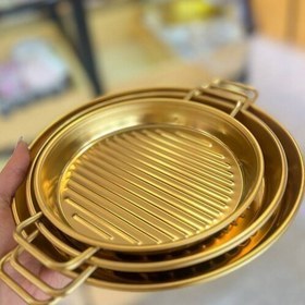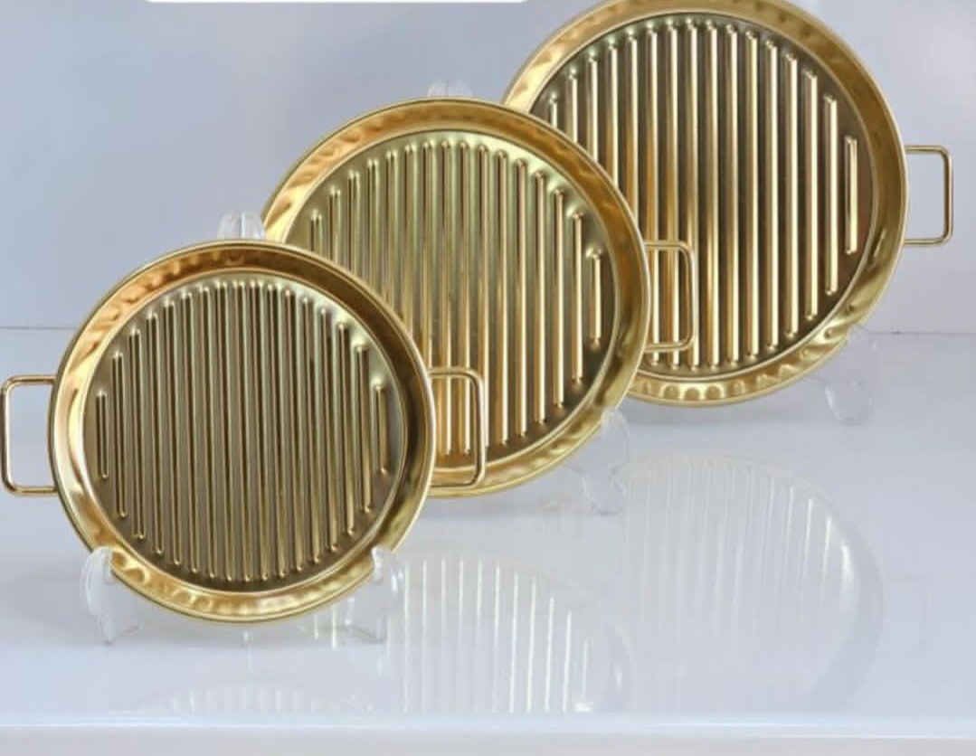 سینی استیل طلایی وارداتی با ظاهری لوکس که مناسب مهمانیها و پذیراییهای خاص است.