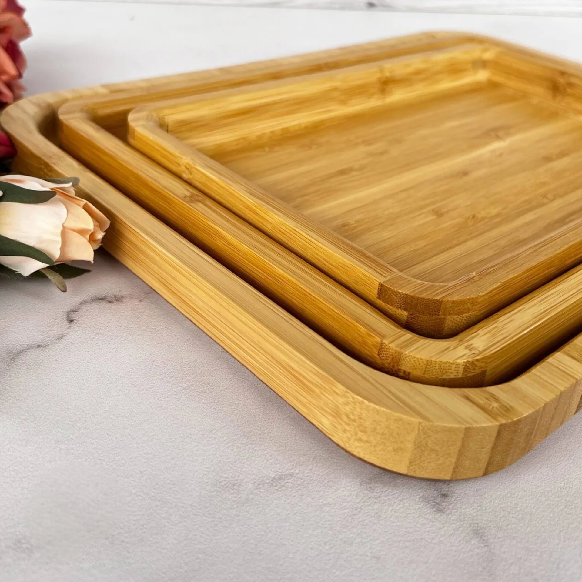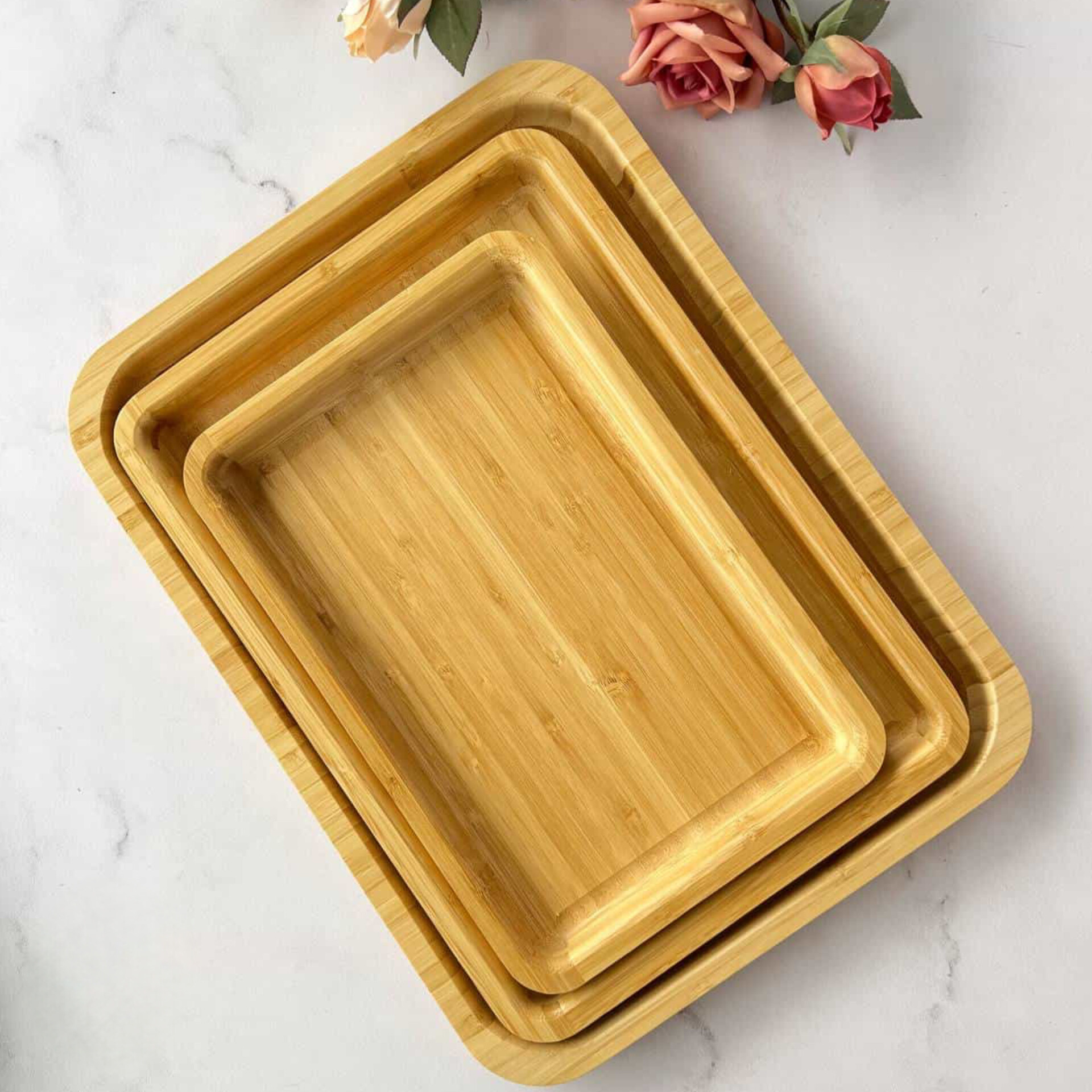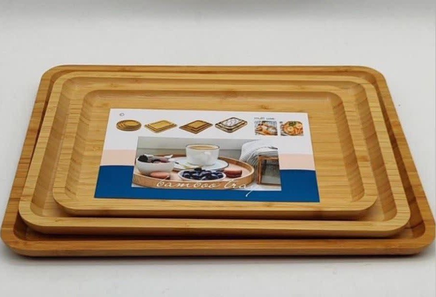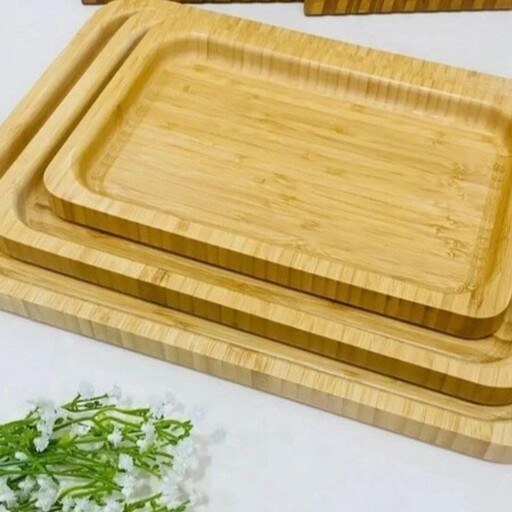 • توضیحات: جنس: چوب بامبو روغنی‌شده (ضد رطوبت) شکل: مستطیلی تعداد سایز: ۳ عدد کوچک: ۲۰ × ۳۰ سانتی‌متر متوسط: ۲۵ × ۳۵ سانتی‌متر بزرگ: ۳۰ × ۴۰ سانتی‌متر سبک، بادوام و مقاوم در برابر رطوبت و ضربه قابل استفاده برای سرو چای، قهوه، صبحانه، شیرینی یا... طراحی زیبا با لبه‌دار برای ایمنی بیشتر ساخت کشور چین