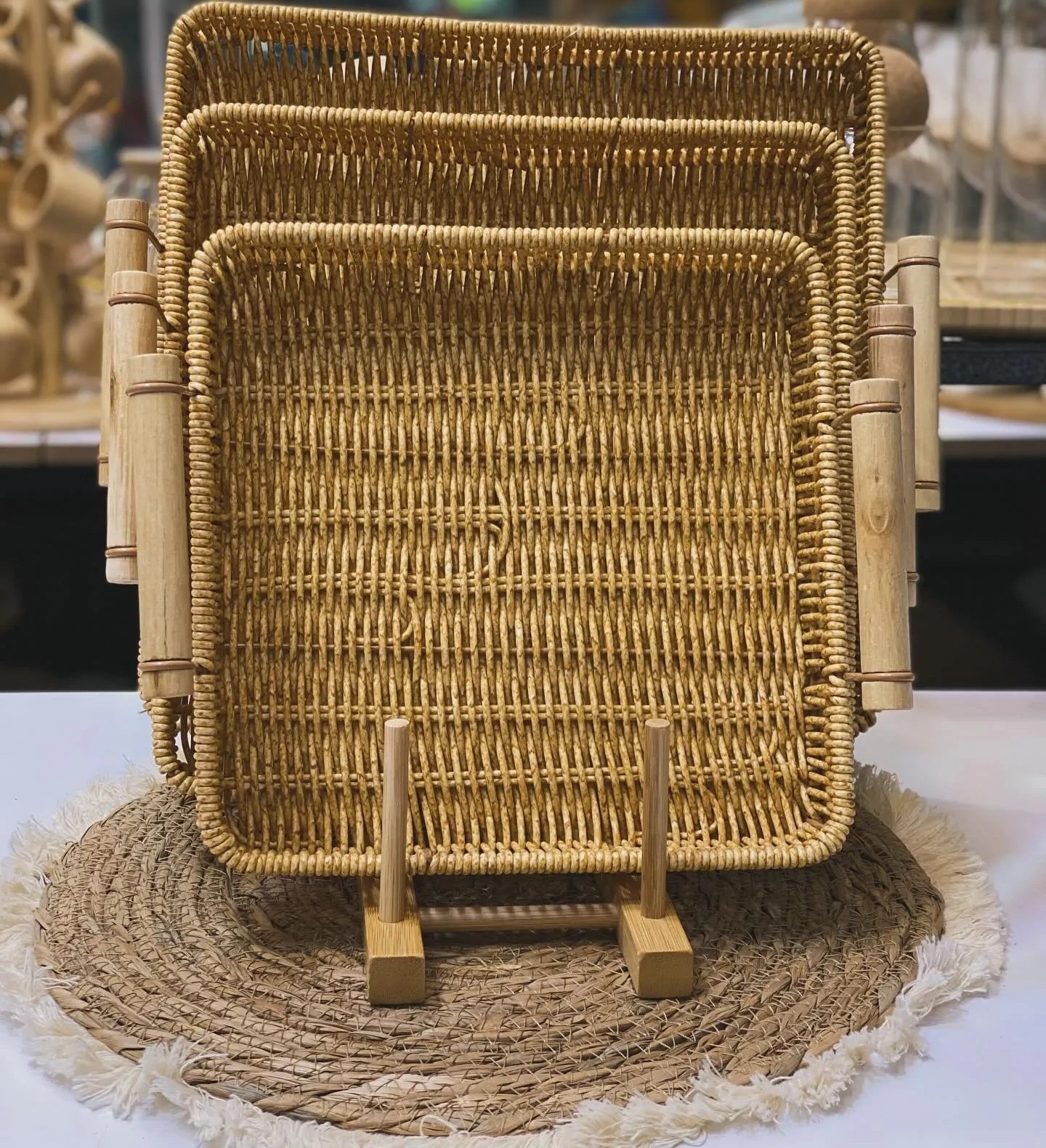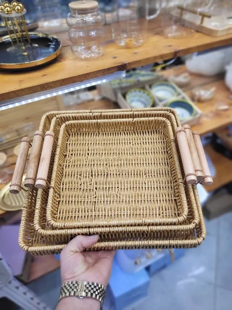 ست سینی ۳ عددی مدل حصیری یک مجموعه کاربردی و زیبا برای سرو نوشیدنی، پذیرایی و نظمدهی به فضای خانه یا محل کار شما است.