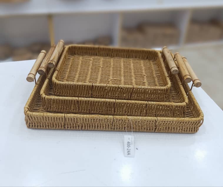 این سینی حصیری یک انتخاب شیک و کاربردی برای پذیرایی و دکوراسیون منزل است. این سینیها با کیفیت بالا و طراحی منحصر به فرد، ظاهری زیبا به فضای شما اضافه میکنند.