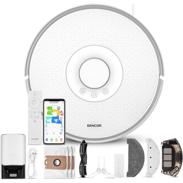2 عدد پاکت گرد و غبار, آداپتور شارژر, استند شارژ, پد طی, ریموت کنترل, فیلتر هوا