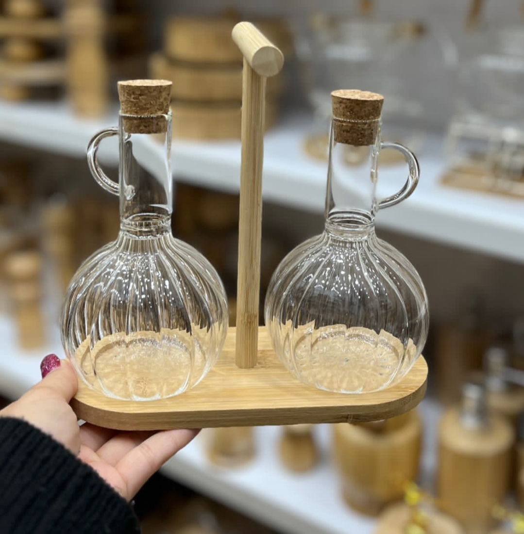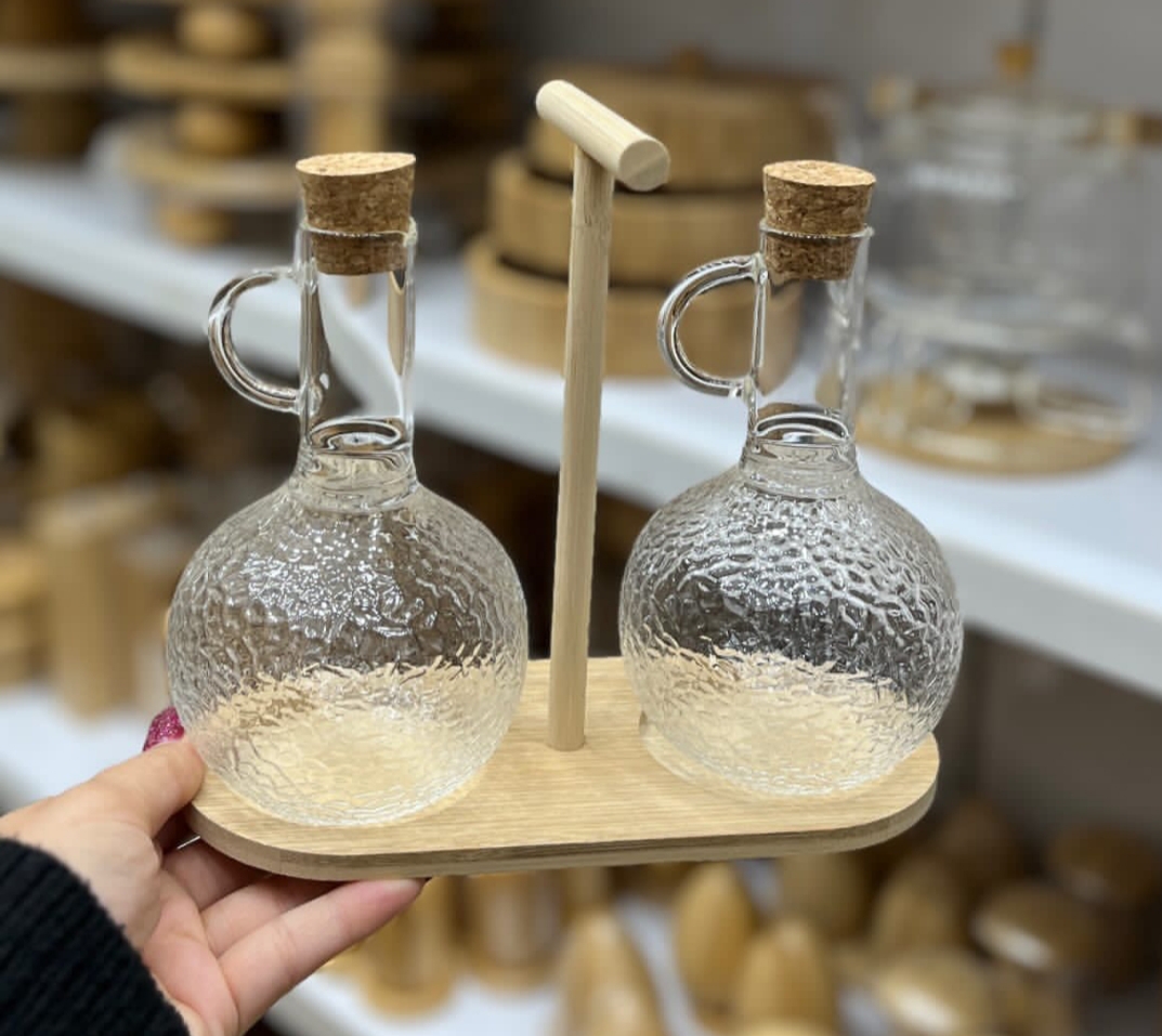 • توضیحات: جنس بدنه : پیرکس جنس استند : چوب بامبو قطر دهانه : 2.5 سانت / ارتفاع : 16 سانت ابعاد استند : 20.5 در 9 سانت / ارتفاع : 20 سانت مناسب برای روغن ریز ،آب لیمو ،آبغوره،سرکه وغیره