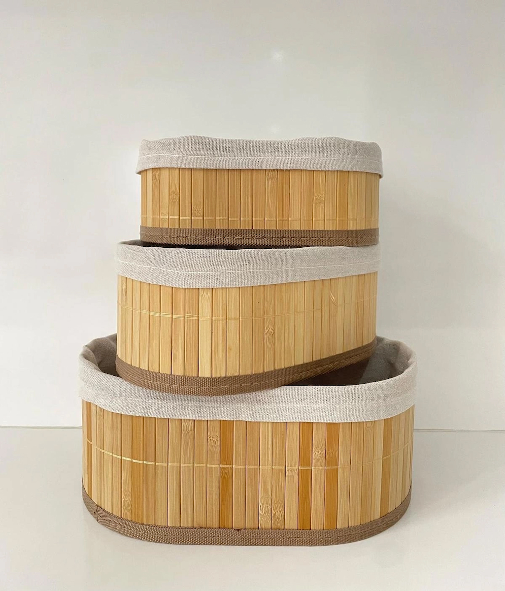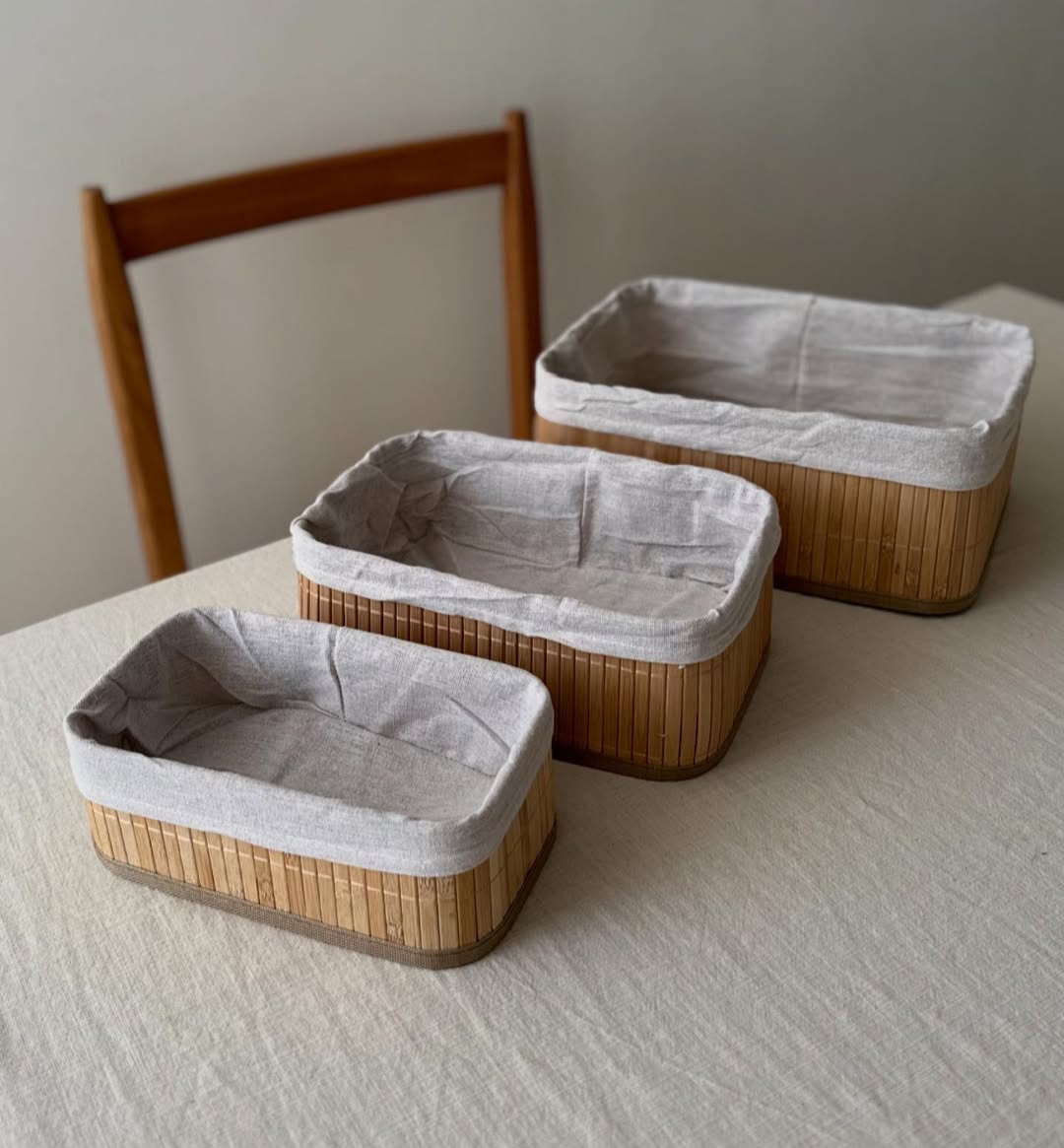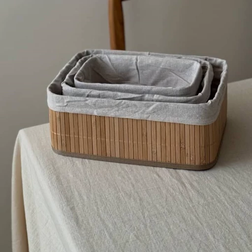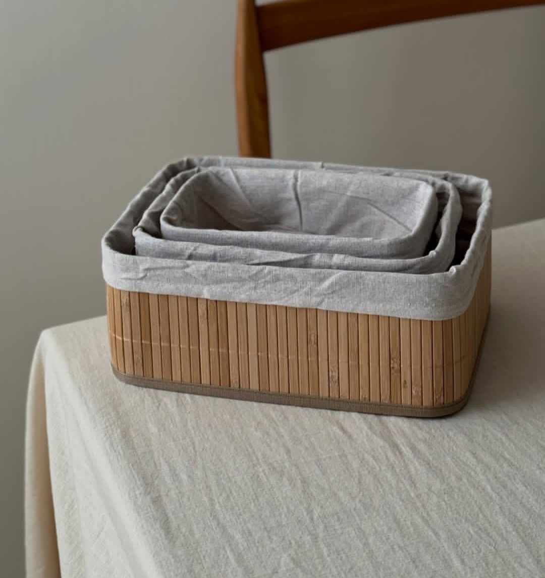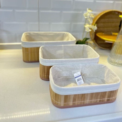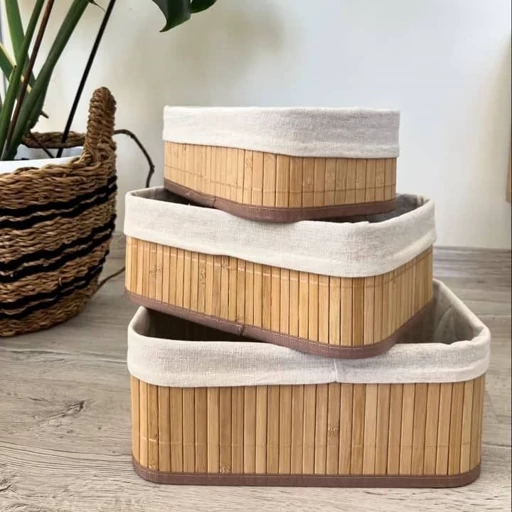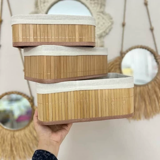 سبد نظم دهنده سه تکیه می باشد ..جنس بامبو درجه یک و پارچه داخلش جدا میشه مناسب به عنوان نظم دهنده کمدو لباس،نگهداری نان و لوازم خوراکی،نظم دهنده کابینت و لوازم آشپزخانه،نگهداری لوازم تحریر و وسیله کار….