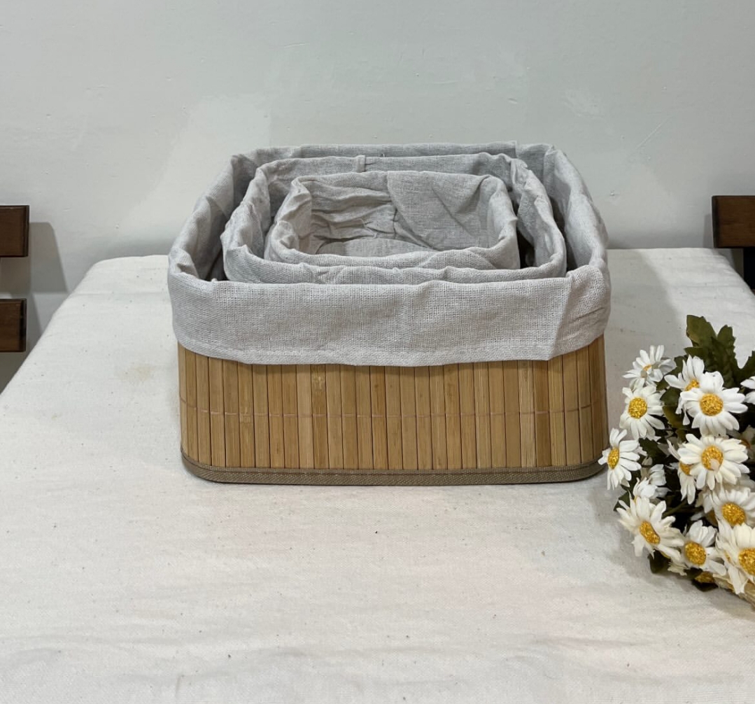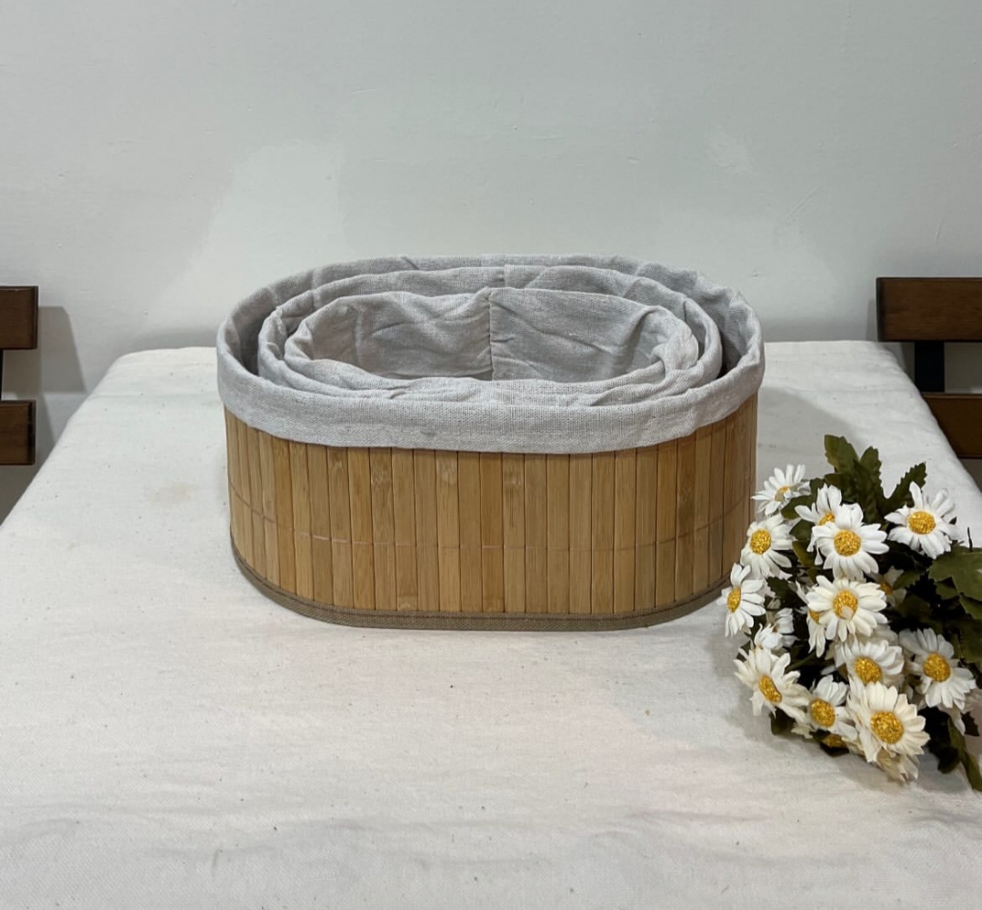 جنس بامبو درجه یک و پارچه داخلش جدا میشه مناسب به عنوان نظم دهنده کمد و لباس،نگهداری نان و لوازم خوراکی،نظم دهنده کابینت و لوازم آشپزخانه،نگهداری لوازم تحریر و وسیله و غیره ...