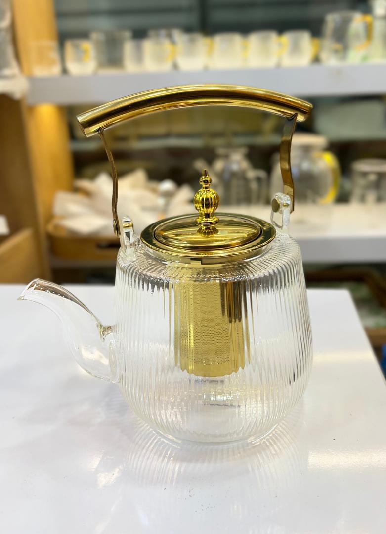 ، دسته و درب و صافی این قوری از استیل با آبکاری طلایی هستند که رنگ ثابت دارند