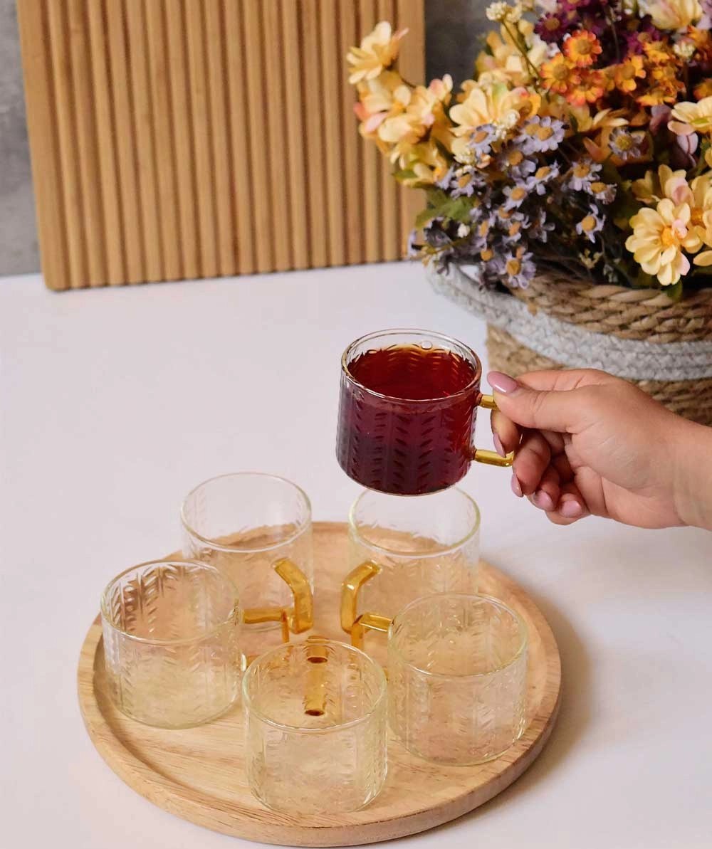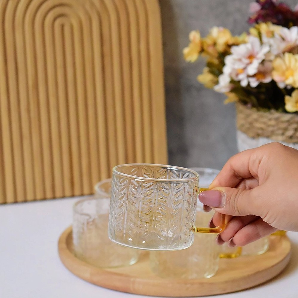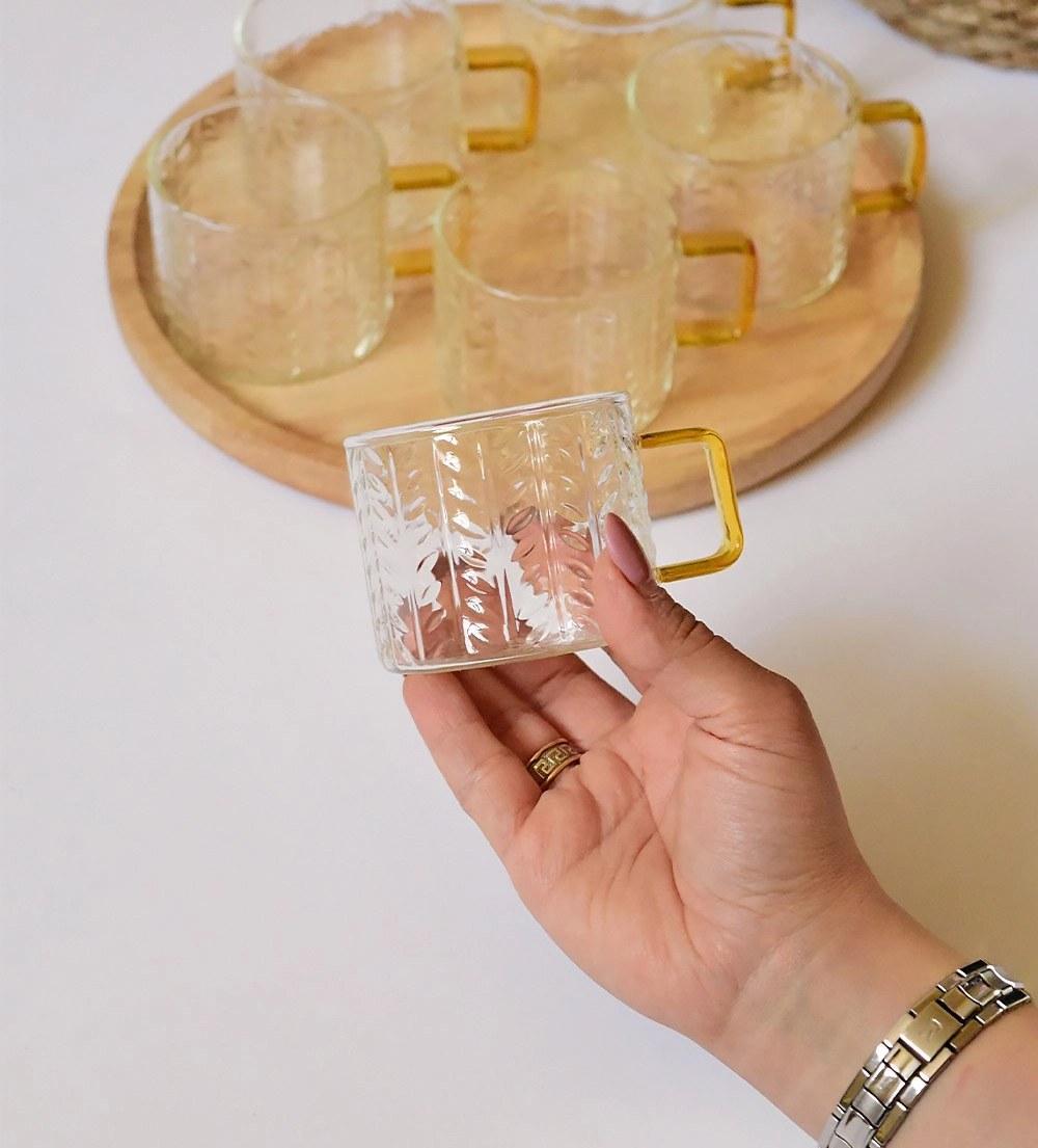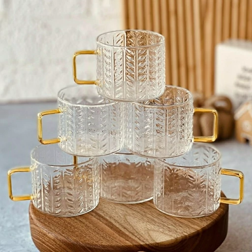 • توضیحات: جنس : پیرکس درجه 1 وارداتی مناسب برای سرو انواع نوشیدنی سرد و گرم جنس محصول پیرکس درجه 1 میباشد تا حجم ۱۰۰ تا ۱۳۰ میلی لیتر گنجایش دار ابعاد مدل دسته دار : ارتفاع 9 سانتی متر به صورت ۶ عددی ب فروش می‌رسد