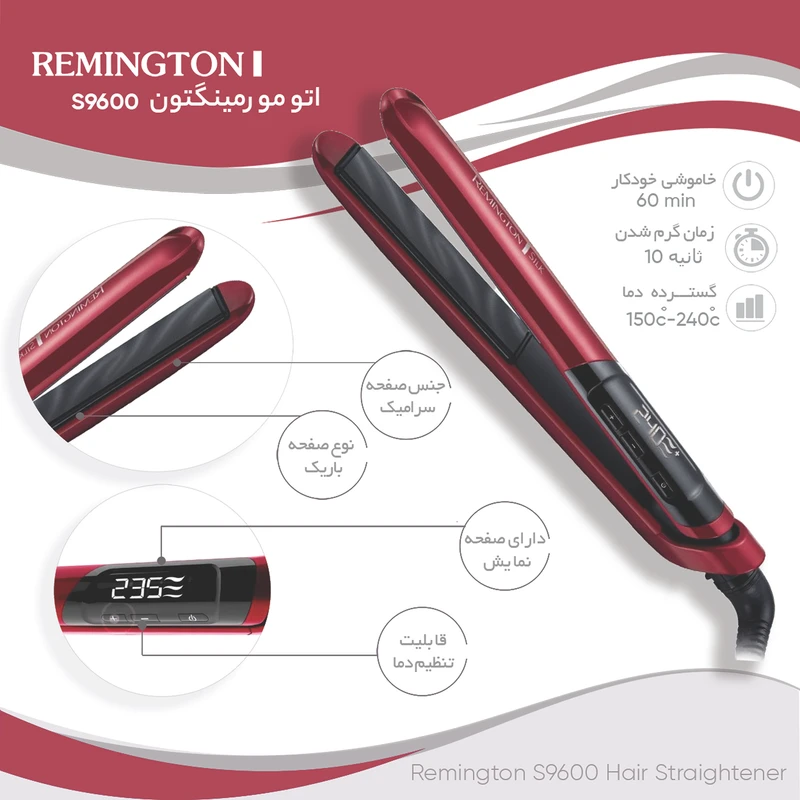 Memory: ذخیره آخرین تنظیمات کاربر, ,, صفحاتی از جنس سرامیک با روکش ابریشم برای دو برابر نرم کنندگی بیشتر موها, ,, ولتاژ جهانی