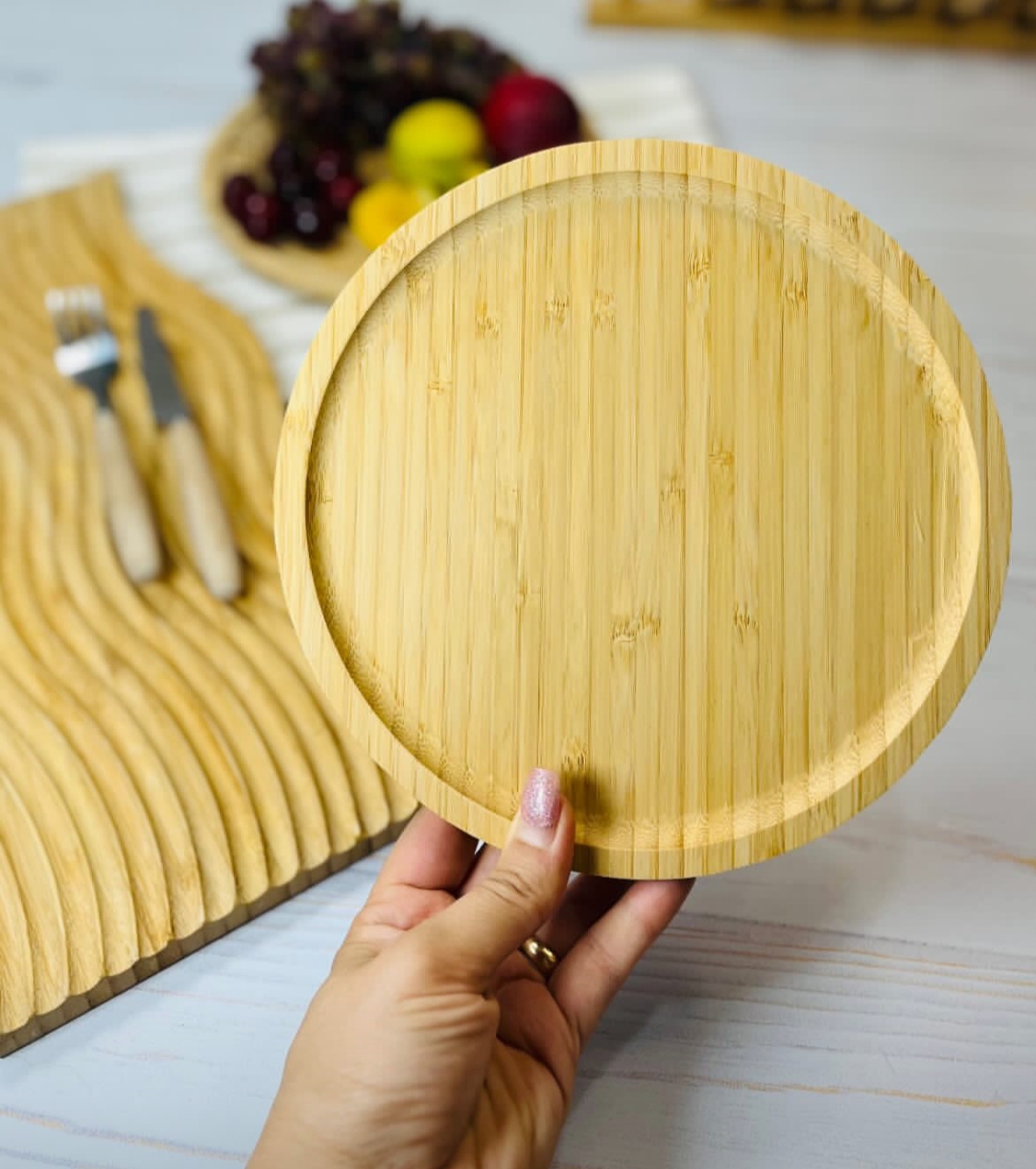 • توضیحات: یه پذیرایی خاص میتونید داشته باشید😍㊁... مناسب سرو غذا،شیرینی،تنقلات و… پیش دستی و بشقاب بامبو موجود در طرح گرد وارداتی قابل شستشو با دست پیش دستی بامبو20سانت بشقاب بامبو 25سانت