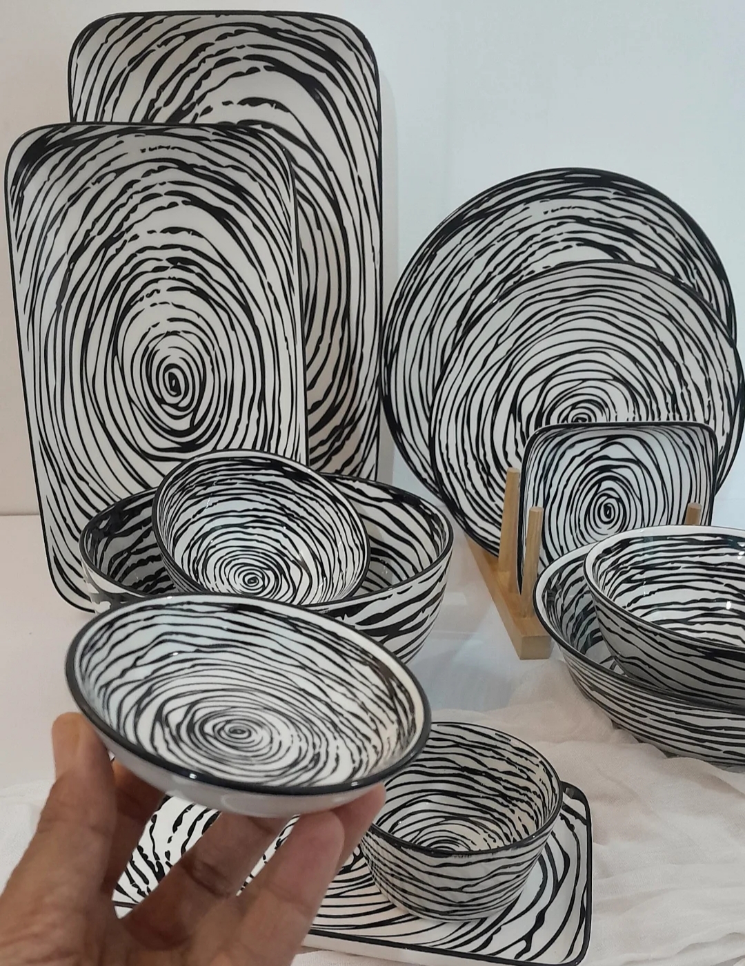 فوق العاده با کیفیت و زیبااین ظروف شامل بشقاب مربع بزرگ، پلو خوری گرد، پیاله ترشی، پیاله ماست، پیش دستی، خورشت خوری، رولت خوری کوچک و کاسه آبگوشت، تابه مستطیل و مربع، پیس دستی نقلی گرد هست که به صورت تک به فروش میرسه