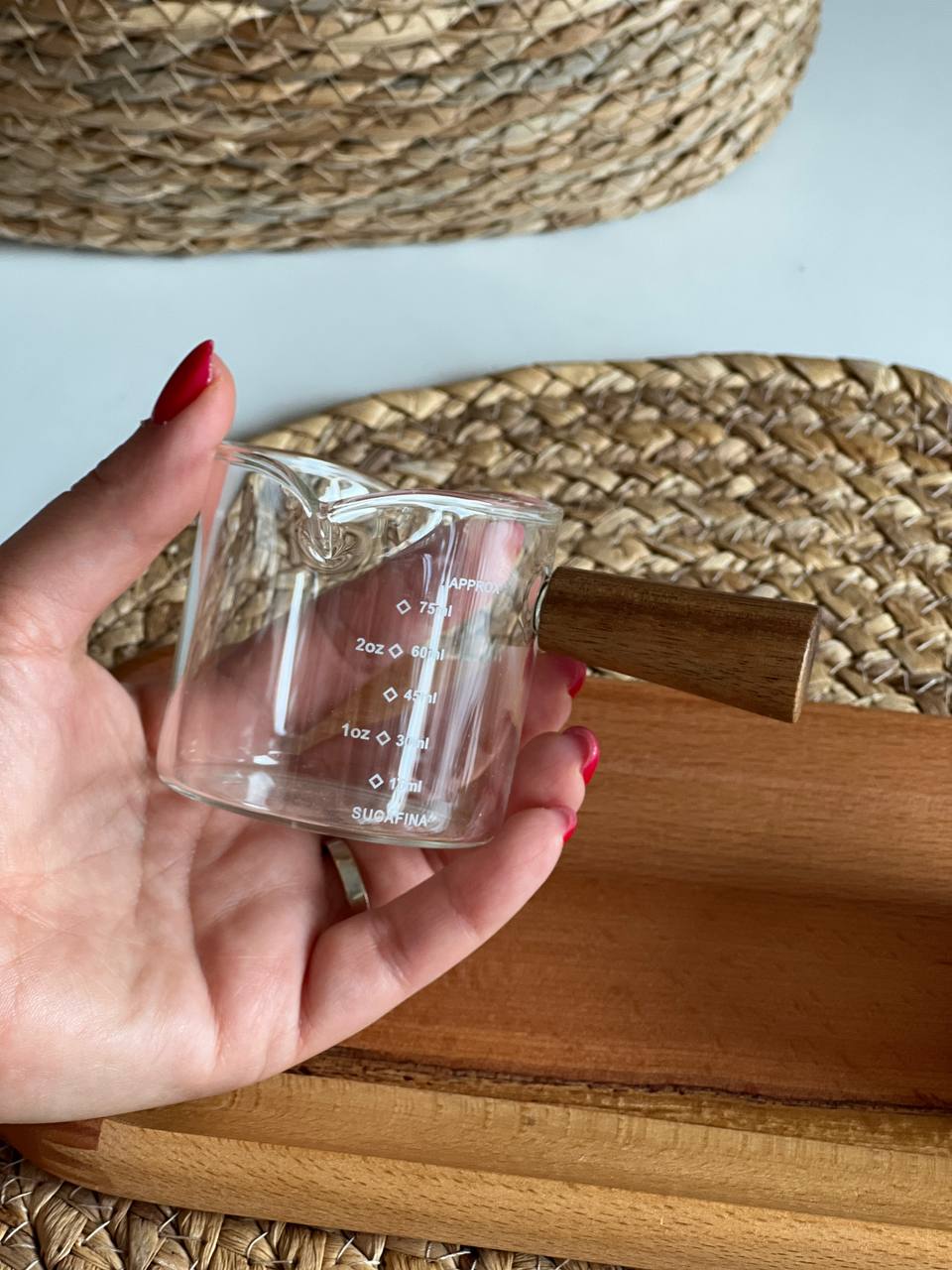 • توضیحات: جنس بدنه: پیرکس جنس دسته: چوب قطر دهانه: 5.5 سانتی متر ارتفاع: 5 سانتی متر طول دسته: 4 سانتی متر حجم: 75 میلی لیتر محصول چین