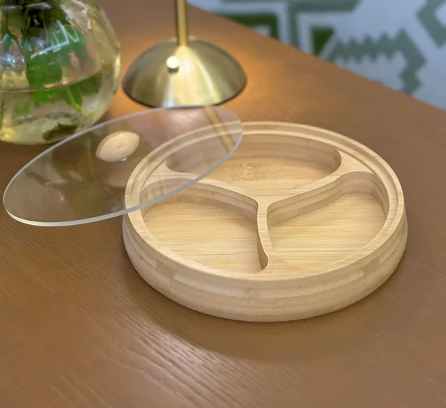 این ظرف از بامبوی طبیعی ساخته شده است که علاوه بر زیبایی ظاهری، دوام و مقاومت بالایی دارد.