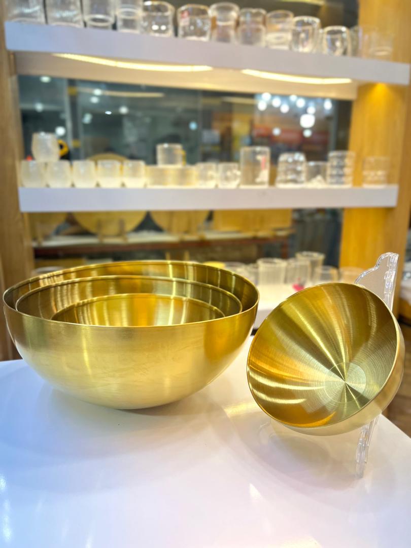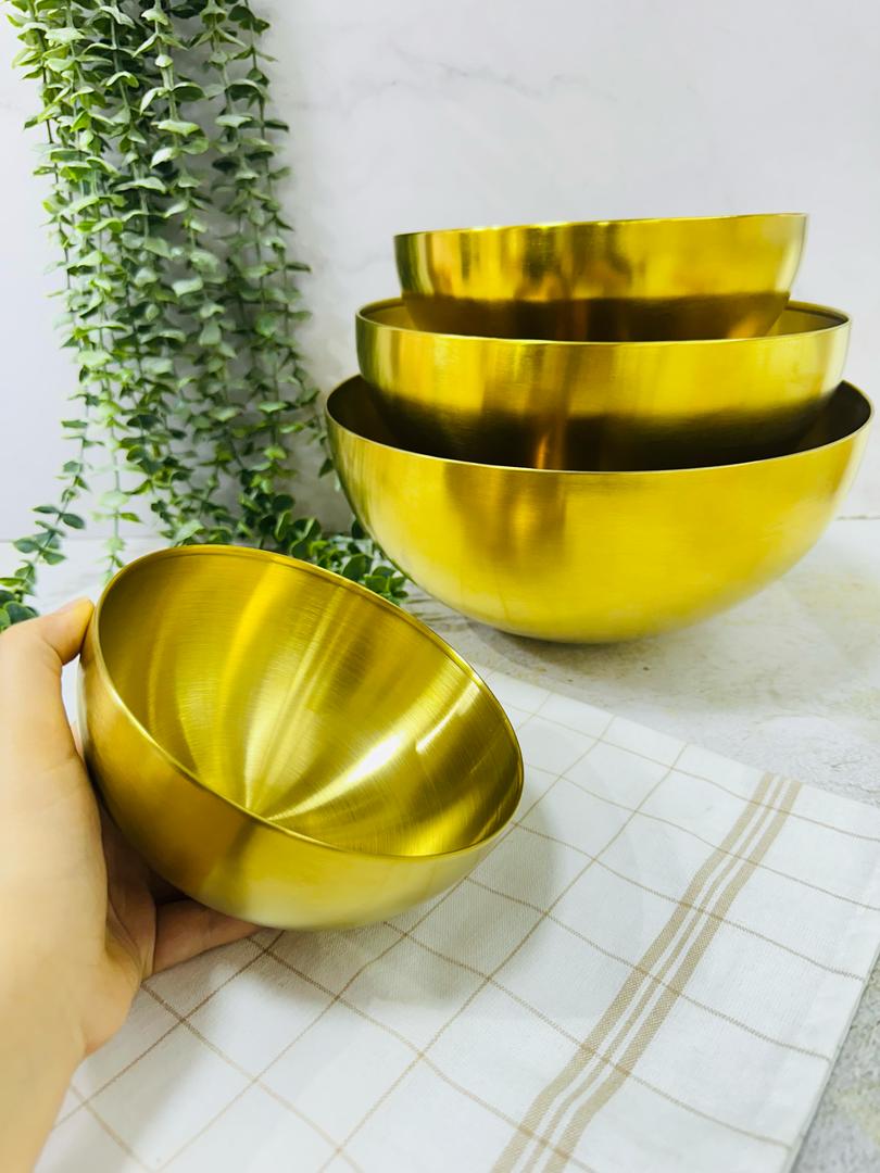 طراحی شیک و مدرن: روکش طلایی و فلزی سطح صاف این کاسه جلوهای لوکس و جذاب به میز و سفره شما میبخشد.