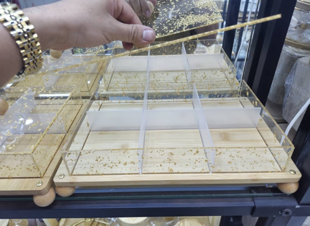 • توضیحات: اردو خوری وارداتی🥹 یه کار فوق‌العاده زیبا و با کیفیت ترکیبی از آکرولیک نشکن و چوب بامبو بسیار شفاف و با کیفیت زر دار زرش داخل خود آکرولیک... درب کار اکرولیک و بامبو کشور واردتی مناسب برای سرو قند، شکلات ،آجیل و .‌‌...
