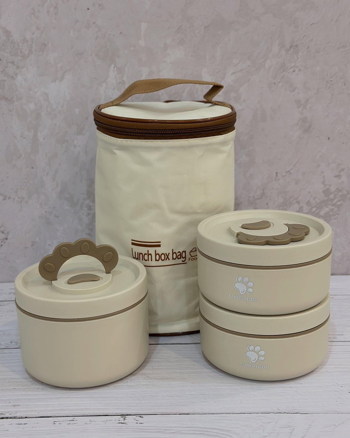 ظرف غذا ۳عددی کیف دار دسته پنجه ای