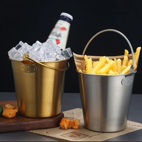 • توضیحات: از جنس استیل 304 طلایی و سیلور رنگ ثابت مناسب برای سرو یخ و خنک نگهداشتن بطری نوشیدنی قابل استفاده در منزل، کافه بار سرد و … امکانات ظاهری : دسته دار