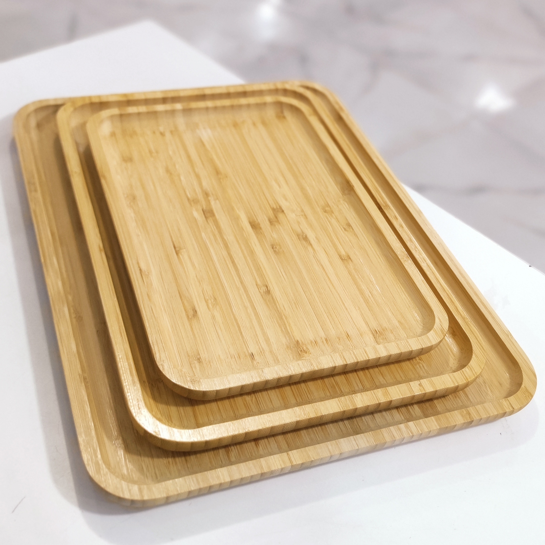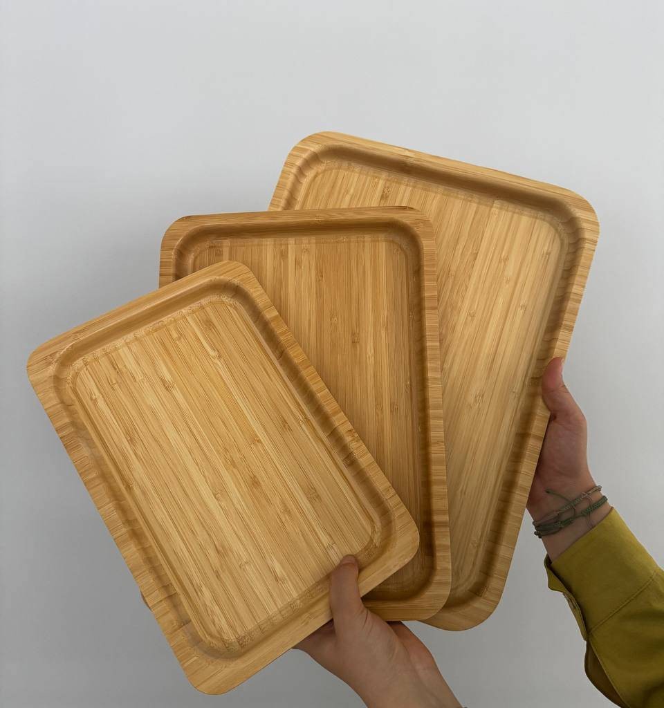 • توضیحات: جنس : چوب بامبو طرح : مستطیلی تعداد: 3 عدد دارای قابلیت شست وشو مناسب برای سرو و پذیرایی کشور چین سایز بزرگ: طول 40cm– عرض 30cm – ارتفاع 3.5cm سایز متوسط: طول 35cm – عرض 25cm – ارتفاع 2.5cm سایز کوچک: طول 30cm – عرض 20- ارتفاع 2.5cm
