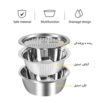 ابعاد آبکش: قطر 26 سانتیمتر، ارتفاع 11 سانتیمتر