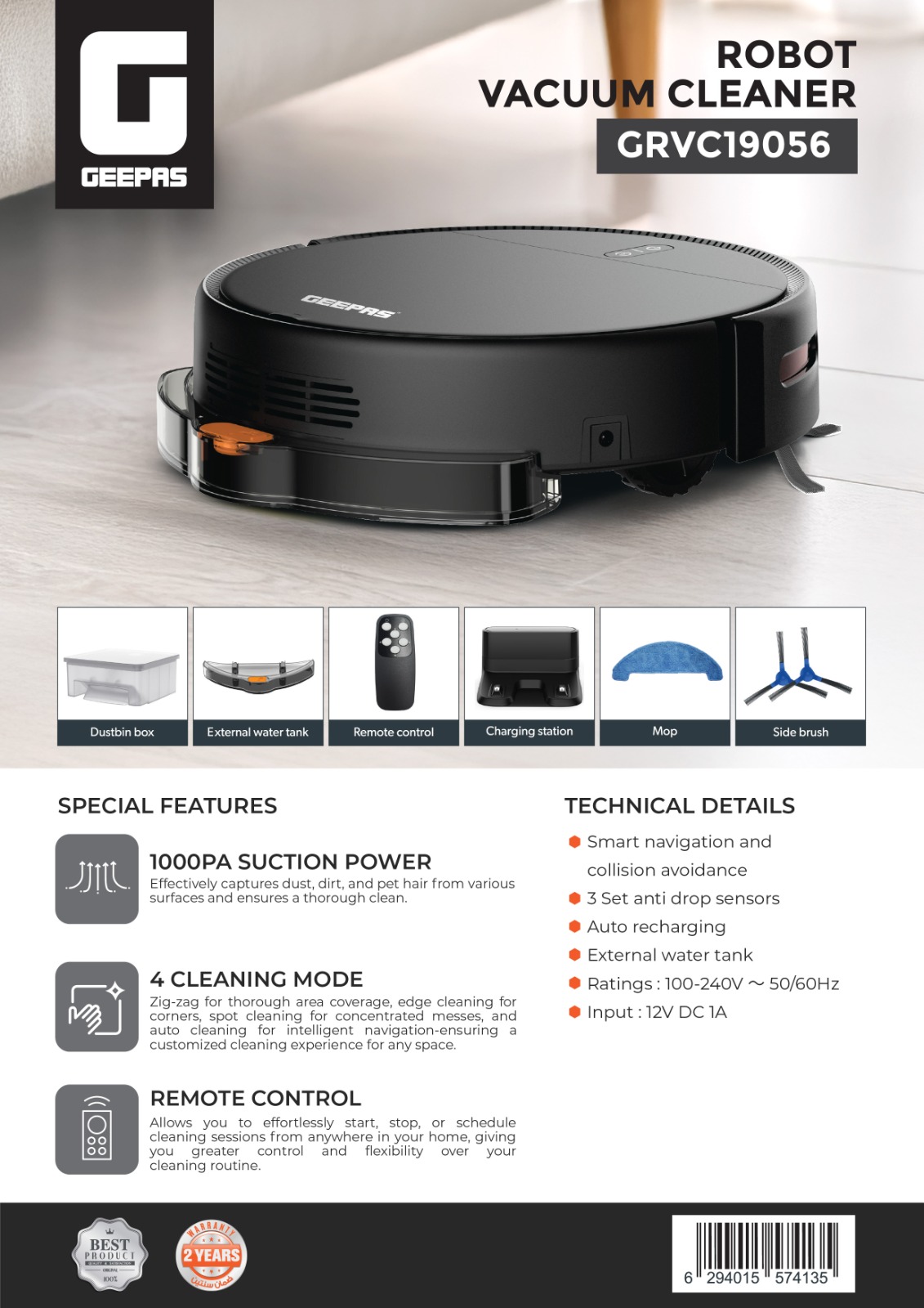 نوع دستگاه: جارو رباتیک ۲ در ۱ (تمیزکاری خشک و مرطوب)