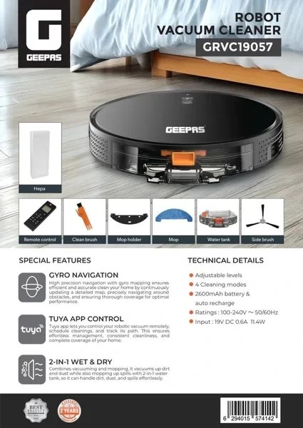• توضیحات: گارانتی تضمین اصالت و سلامت فیزیکی کالا برند Geepas کشور مبدا برند امارات رنگ مشکی عملکرد عملكرد جارو كردن و خشك كردن كف(تي كشيدن) توان ۱۱.۴ وات طراحي كم صدا دارد باطري ليتيومي دارد سنسور ضد سقوط دارد