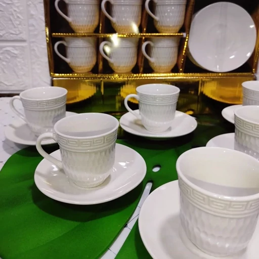 • توضیحات: فنجان قهوه خوری سرامیکی طرح ورساچه و طرح نخل (وارد... ۶ عدد فنجان ۶ عدد نعلبکی جعبه شمش طلایی طرح دار و خاص جنس سرامیک کیفیت عالی ❌طرح ورساچه بصورت رندم ارسال میشه چون داری چند طرح...