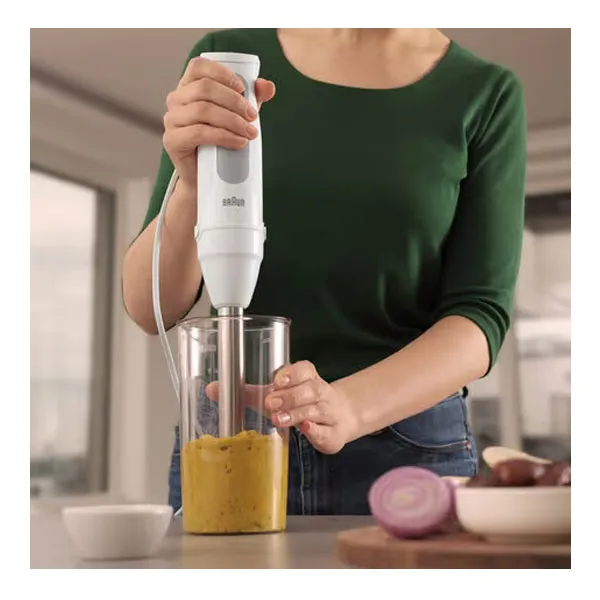 • توضیحات: برند : براون|Braun رنگ محصول : سفید پریمیوم ضمانت و گارانتی : ضمانت اصالت و سلامت فیزیکی توان مصرفی : 1000 وات تعداد سرعت : 21 سطح + توربو جنس تیغه : استیل ضدزنگ طول سیم : 1.2 متر قابلیت شست‌وشو در ماشین ظرف‌شویی : دارد عاری از BPA : بله قفل کودک : ندارد