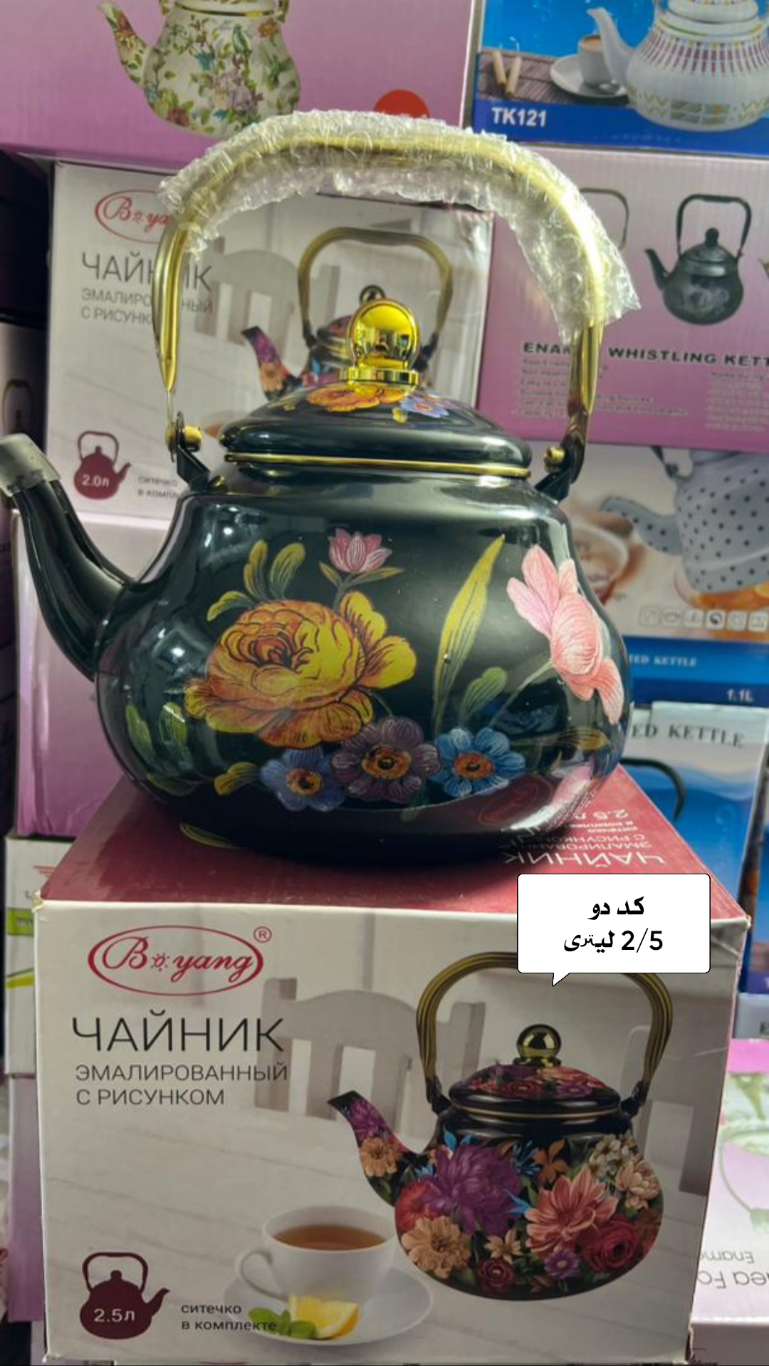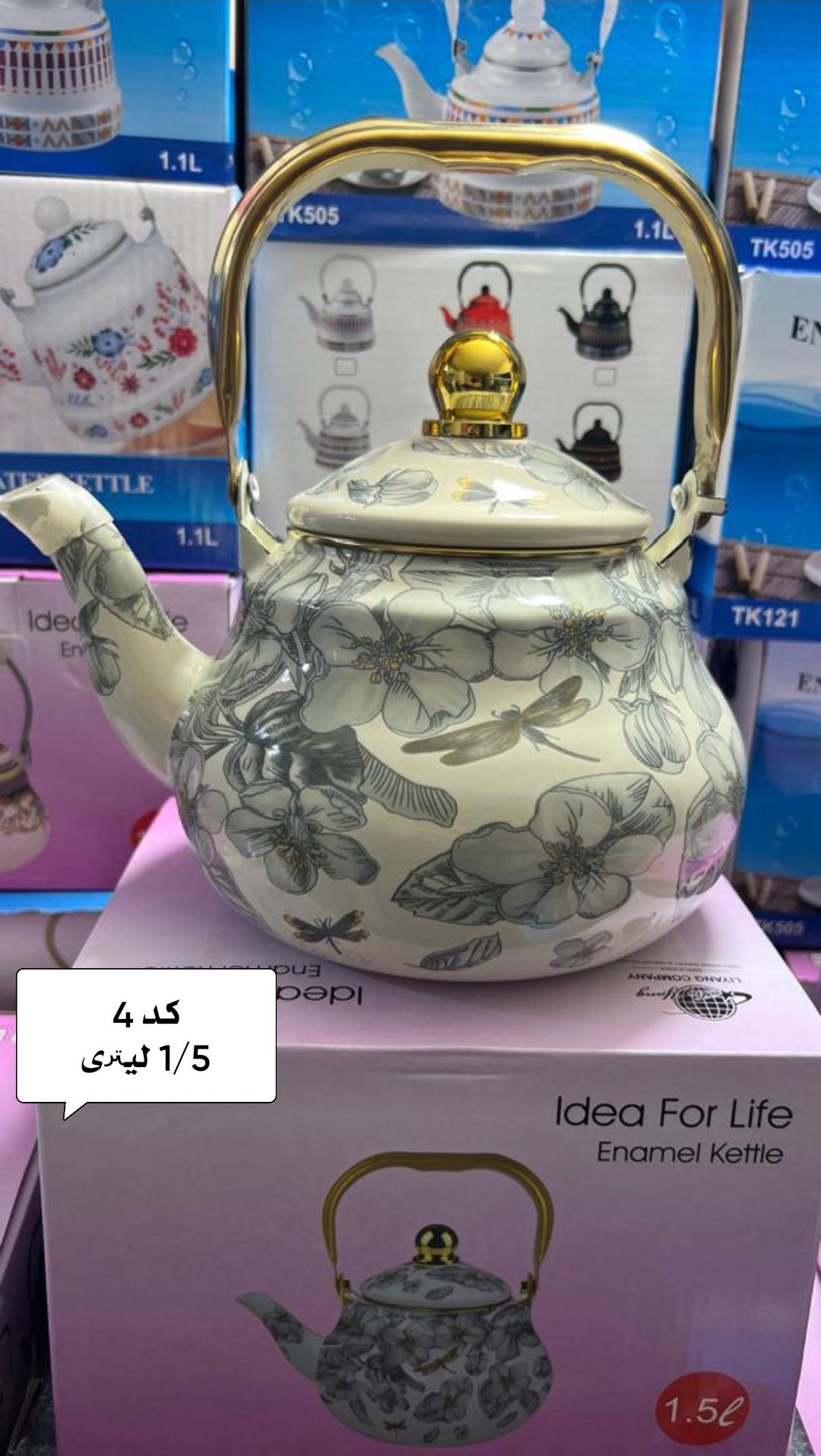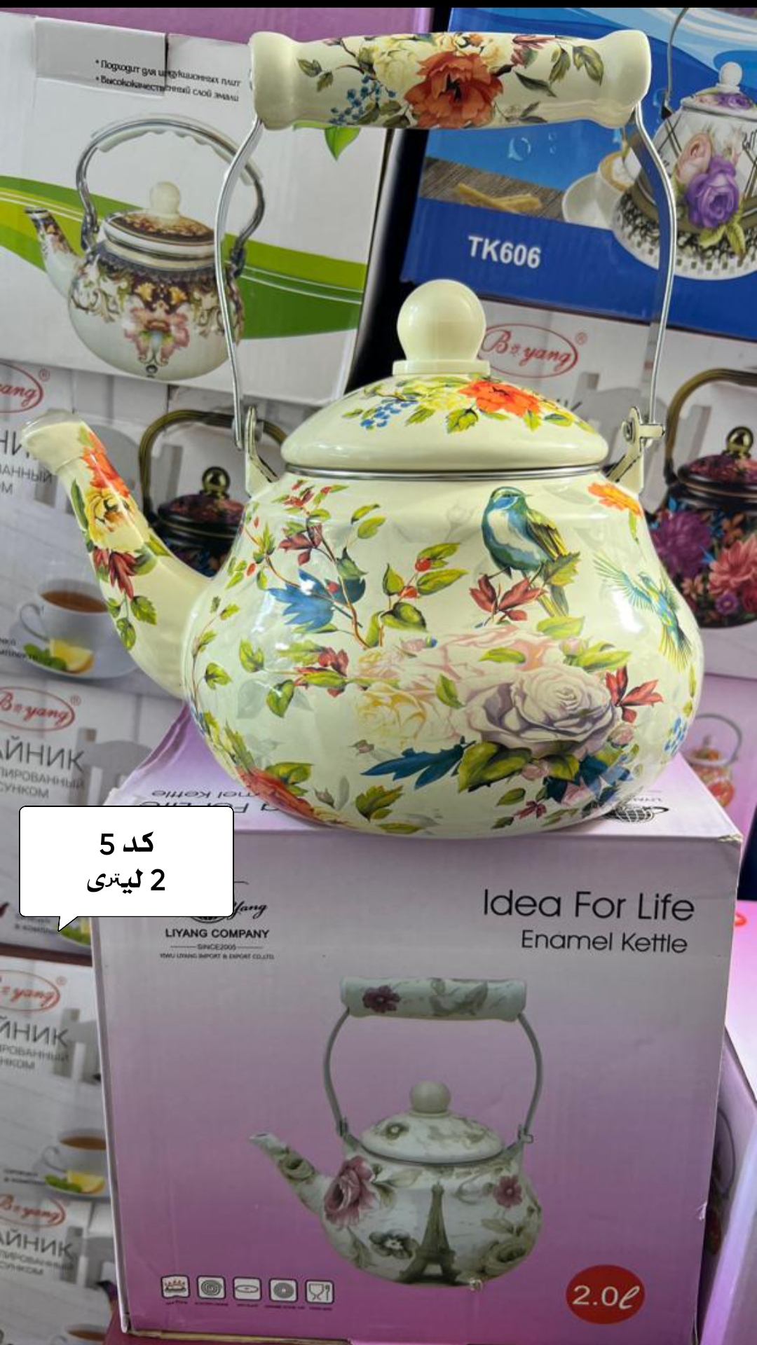 • توضیحات: جنس بدنه: لعاب مقاوم – مقاوم در برابر حرارت و زنگ... حجم: ۲-1/5-2/5 لیتر – مناسب برای استفاده روزمره و مهمانی‌ها. طرح: مختلف منحصر به‌ فرد ساخت: چین – با استانداردهای کیفی بال... کاربرد: دم‌ آوری چای، دمنوش و سایر نوشیدنی‌های گرم ویژگی خاص: طراحی زیبا، دوام بالا و تمیز شدن آسان
